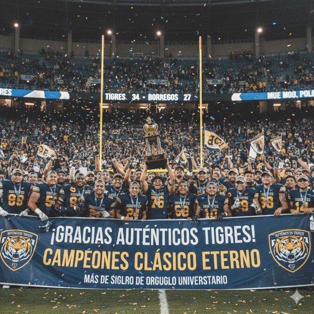 HOLA, TE SALUDO CON EL GUSTO DE SIEMPRE. GRACIAS AUTÉNTICOS TIGRES; MUCHAS GRACIAS POR SU CAMPEONATO LLEVADO A LA COMUNIDAD UNIVERSITARIA, CUAL GOZA DE SU HABERES DESDE HACE MÁS DE UN SIGLO, DONDE LO MOSTRADO EN ESE CLÁSICO QUEDARÁ PARA LA HISTORIA, EN UNA GRABACIÓN CUASI ETERNA, DONDE USTEDES DIERON MUESTRA DE ESE AFÁN DE OBTENER EL TRIUNFO; TRIUNFO QUE ES AMIGO DE TODOS, YA QUE EL GANAR Y TRIUNFAR TIENE MUCHOS AMIGO, ENTRE ELLOS LA GLORIA DE HABER GANADO EL CLÁSICO QUE DEJA MUCHAS ALEGRÍAS, PERO TAMBIÉN LÁGRIMAS QUE AHORA SE FUERON DEL LADO DE LOS BORREGOS SALVAJES,.