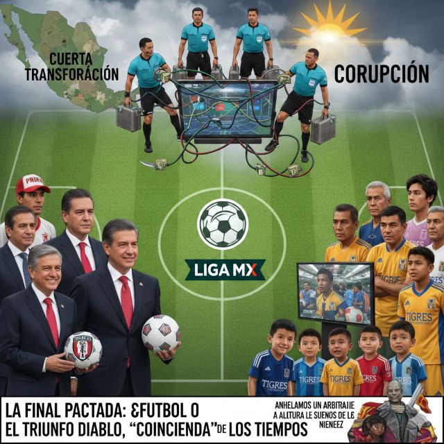 RECUERDATE, SE HACE MENCIÓN, DONDE LA INTENCIÓN NO ES AGUADAR LA FIESTA, PERO QUE SI ES EL ARBITRAJE Y SUS ABANDERADOS Y EN LOS ÚLTIMOS TORNEOS LOS SEÑORES DEL VAR, QUIENES DECIDEN LAS FINALES DEL FUTBOL MEXICANO, SALVO RARAS EXCEPCIONES., SON LOS ÁRBITROS LO QUE DECIDEN EL “GANADOR”. SE HACE HINCAPIÉ, SALVO RARAS EXCEPCIONES, DONDE SE ANHELA CON FERVOR CUASI RELIGIOSO, QUE ESTA FINAL LA GANE EL MEJOR EQUIPO EN LA CANCHA, YA QUE SI EN MÉXICO ESTÁN PUESTAS TODAS LA ESPERANZA DE UN MEJORÍA SOCIAL EN EL MUNDO, SI LO ESTAN, MÁXIMO QUE ES SEDE EN ALGUNOS JUEGOS ELIMINATORIOS DEL MUNDIAL Y ELLO DEBE DE CONSIDERARSE, CUÁL OJALA LOS PRINCIPIOS DE LA CUARTA TRANSFORMACIÓN SEAN CONSIDERADOS EN ESTA FINAL DEL FUTBOL MEXICANO, DONDE NO LE ROBEN A LA NIÑEZ,SU ILUSIÓN DE VER UN ARBITRAJE A LA ALTURA DE SUS SUEÑOS, NO LE TRAICIONEN AL TOCAR LA SILBATINA EN EL JUEGO RUDO Y MAL INTENCIONADO, Y NO MENTIR PARA ENCUBRIR UN ARBITRAJE NAVAJEADO.