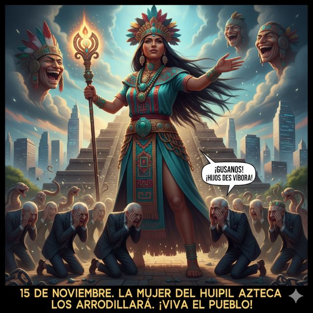15 DE NOVIEMBRE DÍA EN LA SEDE DE LOS PODERES DEL ESTADO Y NACIÓN MEXICANA QUISO SER PISOTEADA POR LA TRAICIÓN DE UNOS MALOS MEXICANOS SIN PATRIA Y HONOR, CUAL LA HERMOSA MUJER DE HUIPIL AZTECA, CON LA BRISA DE SU SONRISA LOS VENCIÓ.