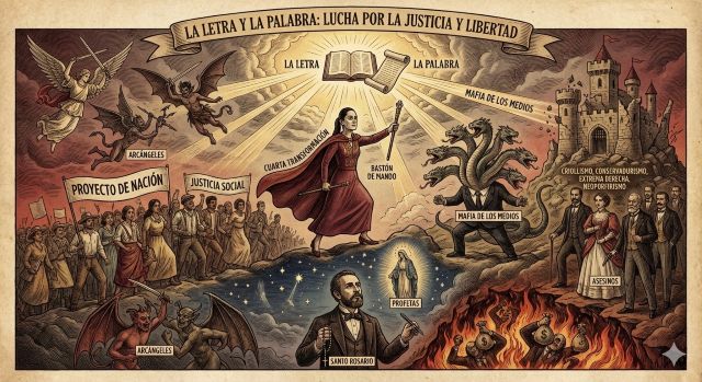 La letra, la palabra y el criollismo, conservadurismo, extrema derecha, neoporfirismo, en contienda, en lucha sin dar y pedir cuartel, donde los arcángeles hacen lo suyo a favor de la letra y la palabra.