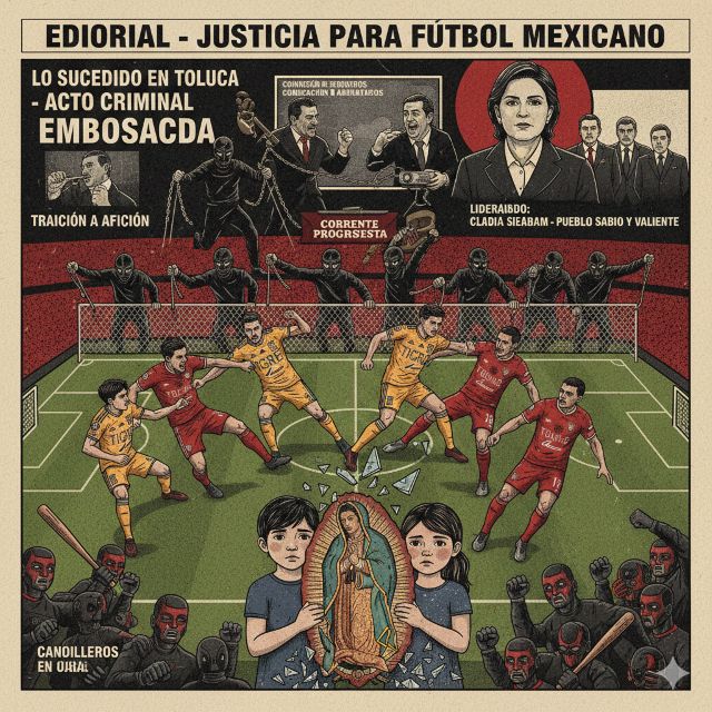 EN TAL CONTEXTO TE INVITO A VER EL VIDEO «MOTIVOCIONAL» DEL ENTRENADOR DEL TOLUCA A SUS JUGADORES, ES UNA INCITACION AL JUEGO VIOLENT0, DONDE SE DEDUCE QUE YA TENIA EL VISTO CRIMINAL DE SUS COMPLICES, COMO SON LOS FEDERATIVOS DEL FUT BOL MEXICANO, UN ARBITRAJE CONVERTIDOS EN LA PRIMERA LINEA DE LA EMBOSCAD, CUAL YA ESTABA DECIDIDA SU MAQUIANCION Y EJECUCION.